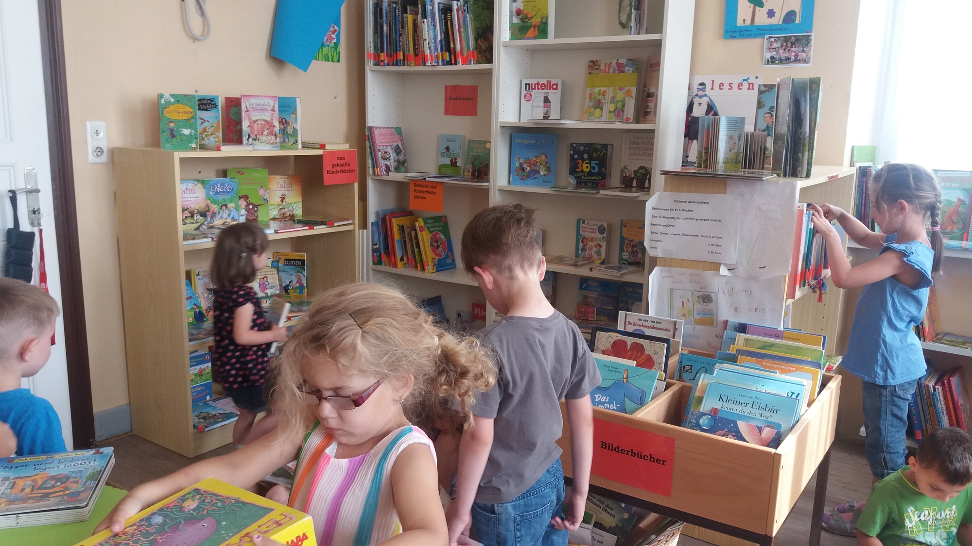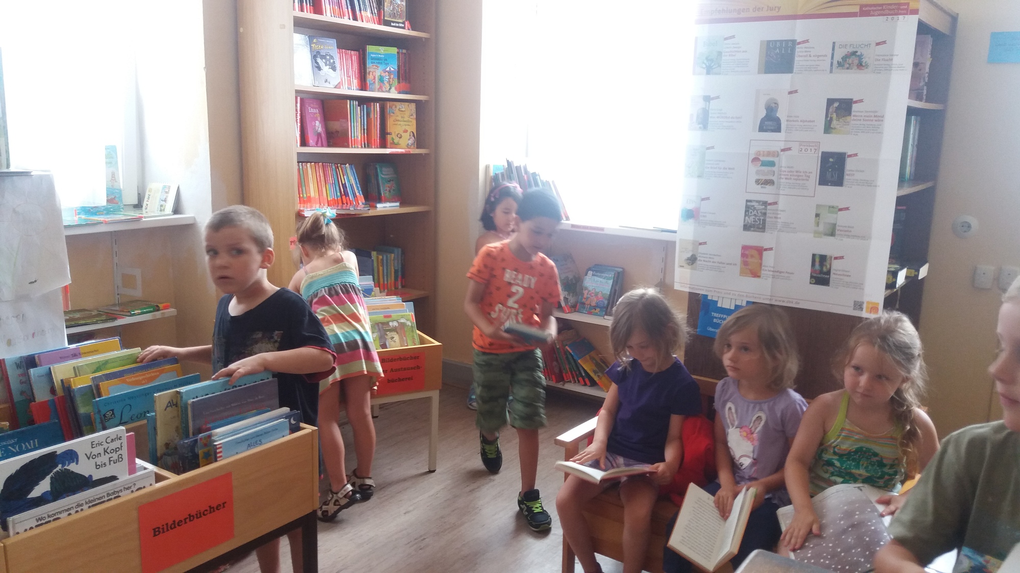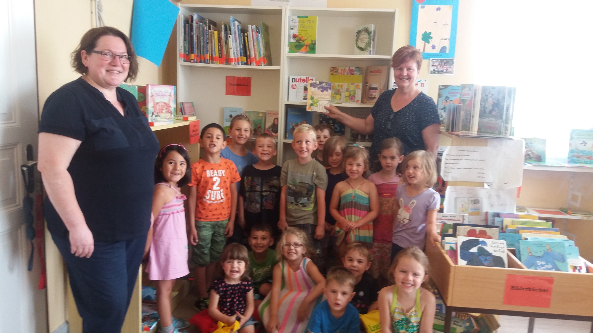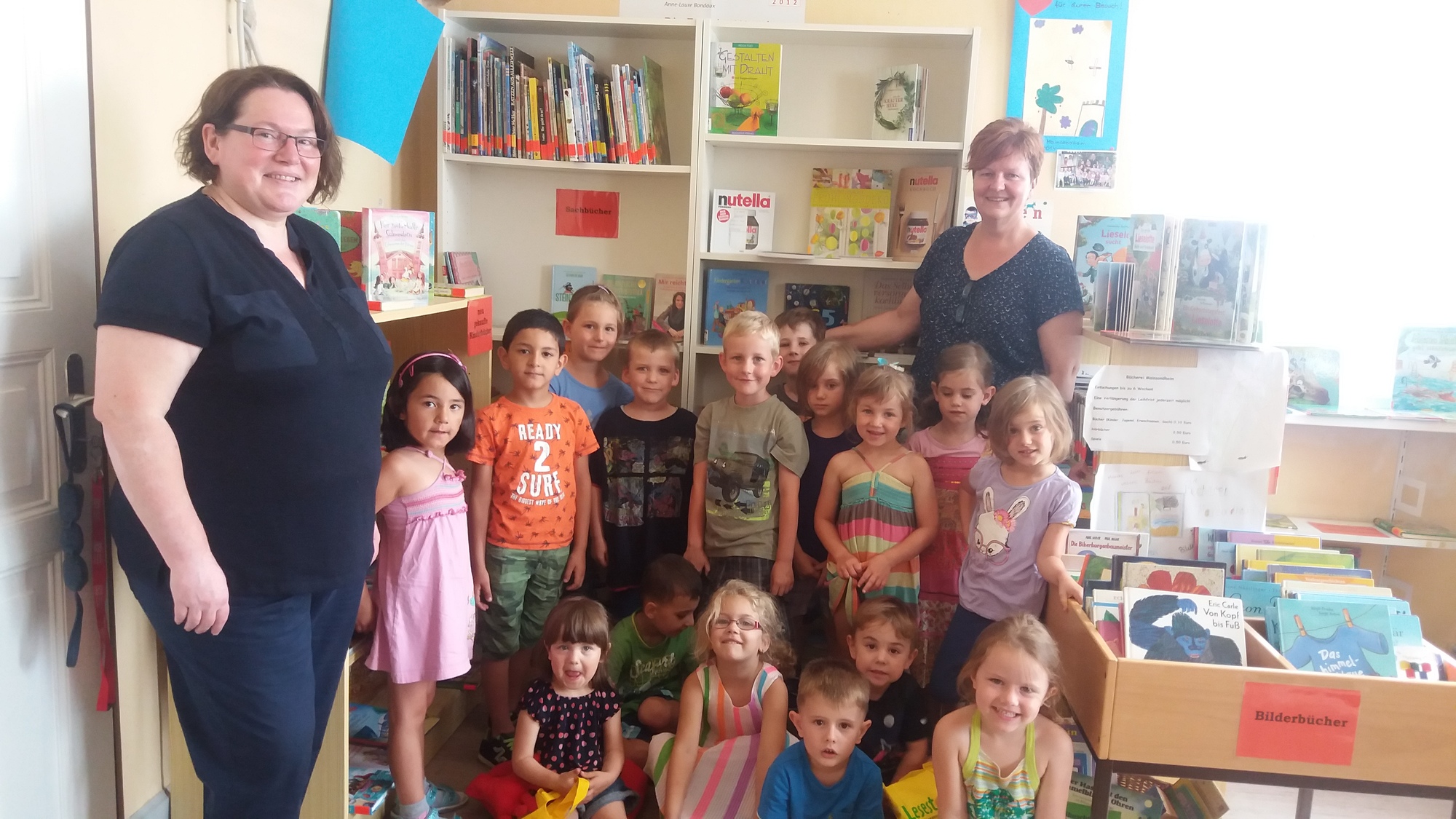 Am 23. Juni 2017 war es soweit! 16 Kinder mit dem Kindergartenteam haben sich auf dem "weiten" Weg gemacht und die Mainsondheimer Bücherei besucht. Zu Beginn sangen die Kinder ein kleines Lied und die Kindergartenleiterin überreichte ein gereimtes Gedicht. Nach kurzer Einweisung durch Christine Schmidt durften die Kinder nach Herzens Lust in den Regalen und Bücherkisten stöbern und sich altersgerechte Kinderbücher anschauen. Zum Abschluss erhielten 2 dreijährige Kindergartenkinder das Lesestart-Set II.