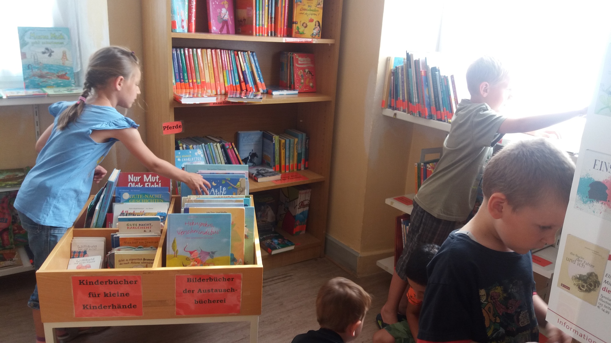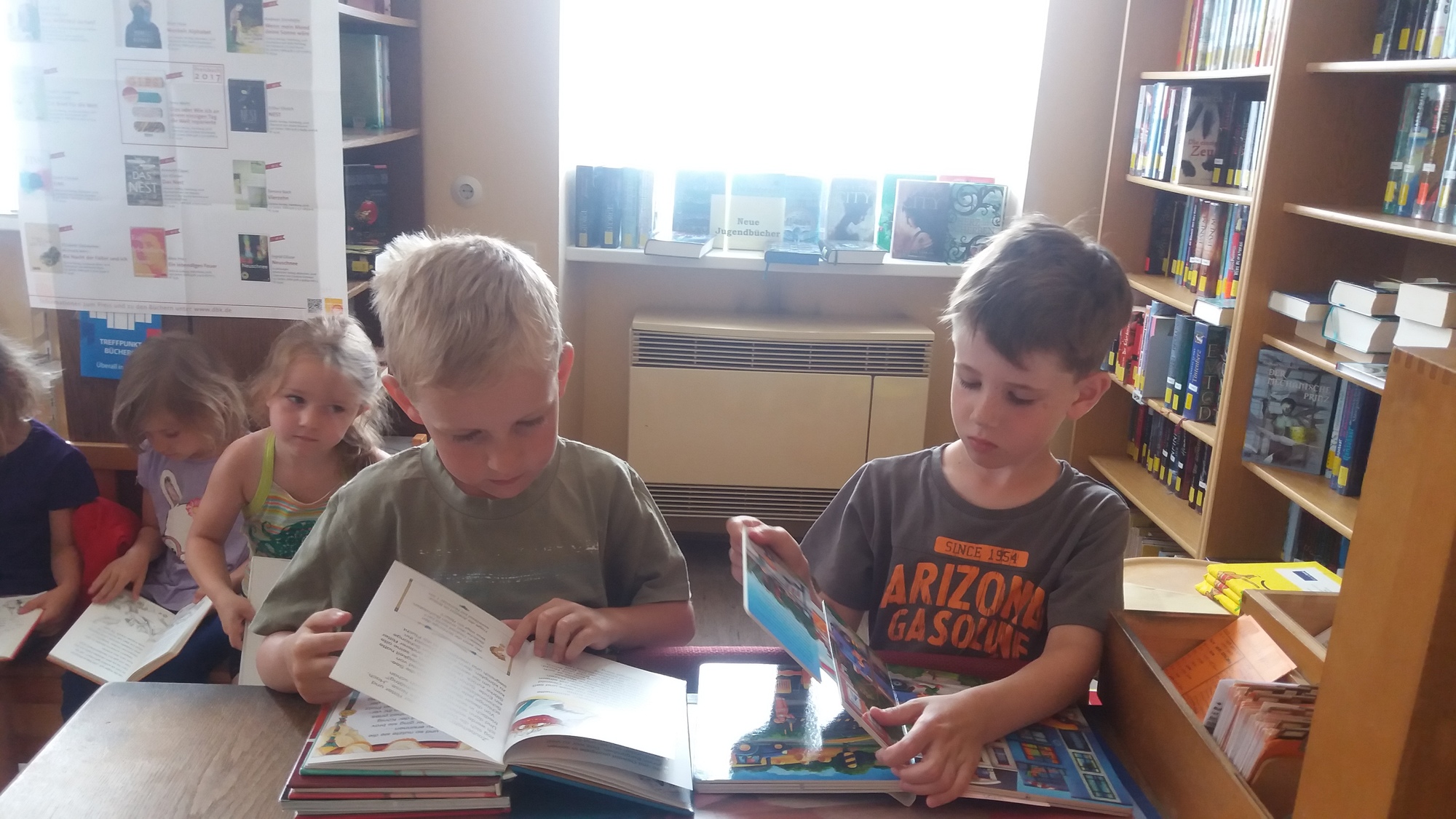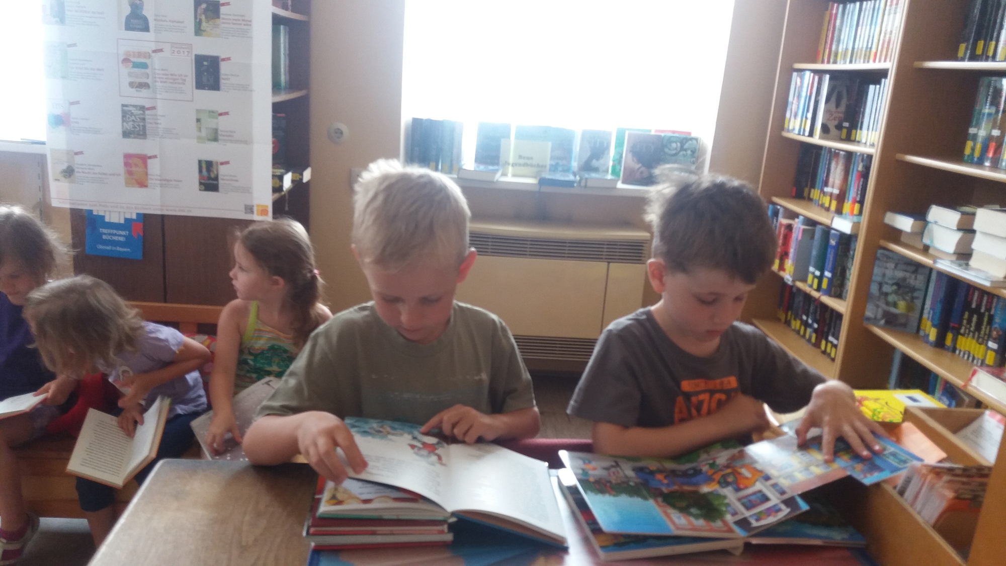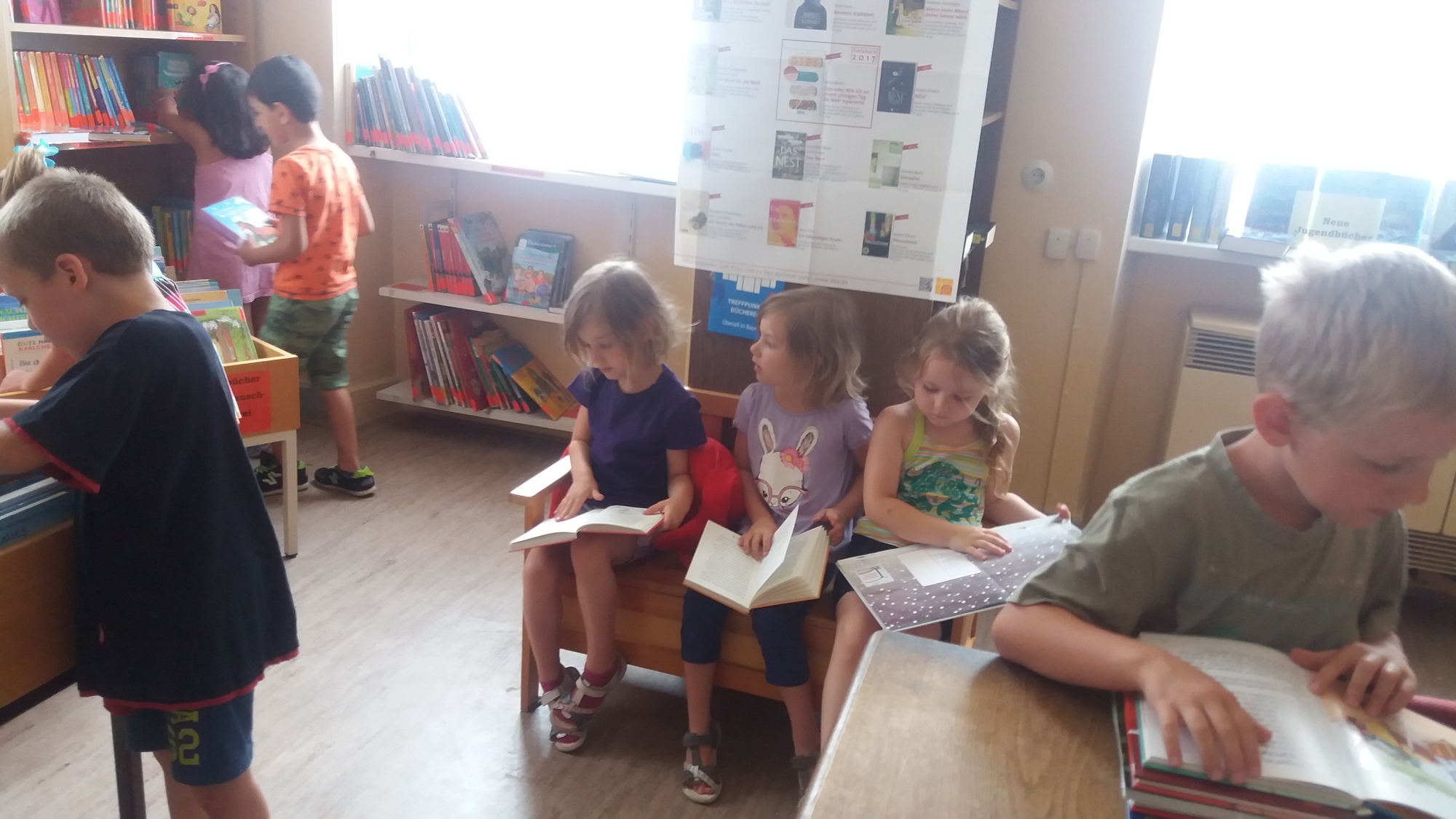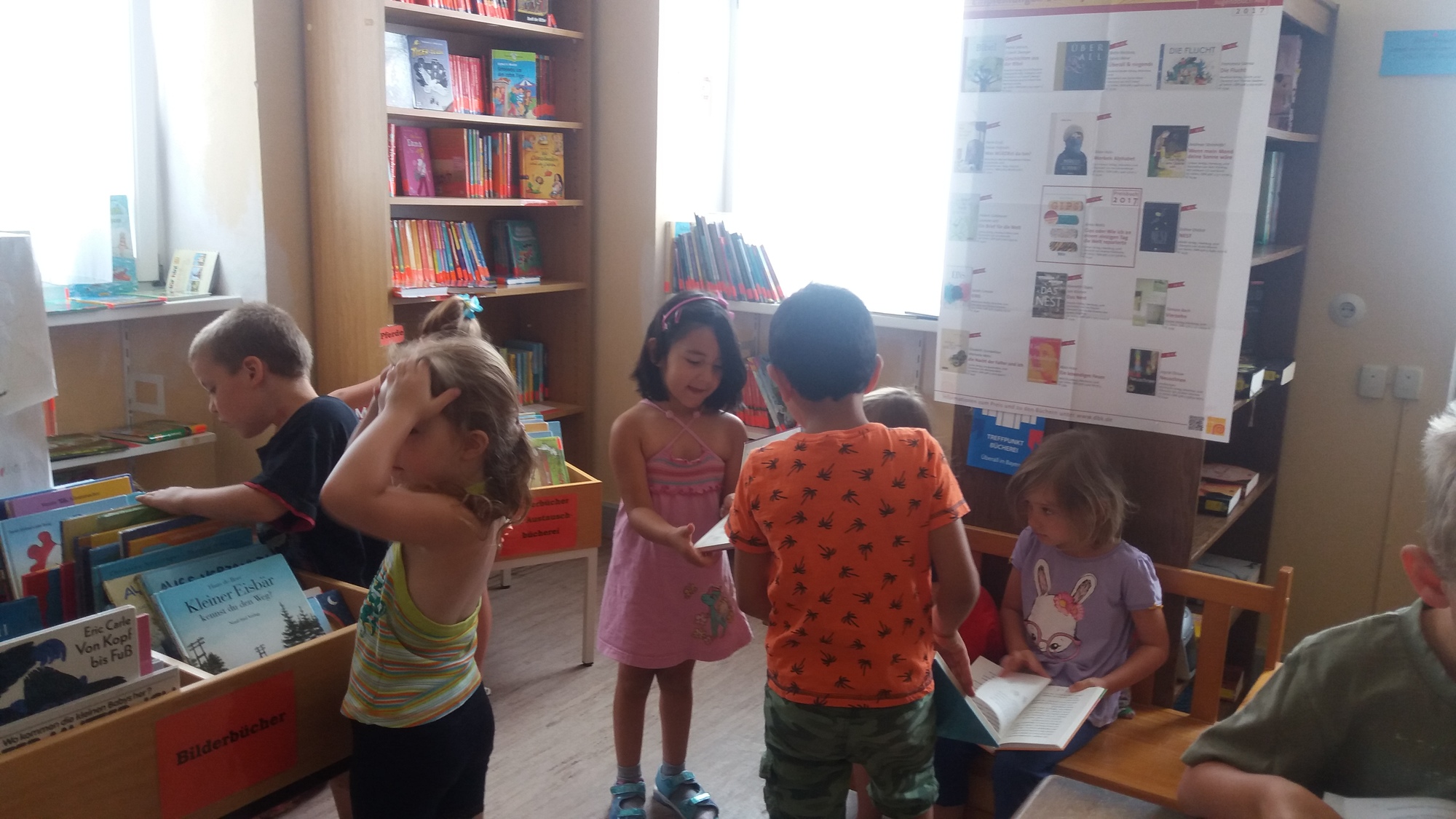Am 23. Juni 2017 war es soweit! 16 Kinder mit dem Kindergartenteam haben sich auf dem "weiten" Weg gemacht und die Mainsondheimer Bücherei besucht. Zu Beginn sangen die Kinder ein kleines Lied und die Kindergartenleiterin überreichte ein gereimtes Gedicht. Nach kurzer Einweisung durch Christine Schmidt durften die Kinder nach Herzens Lust in den Regalen und Bücherkisten stöbern und sich altersgerechte Kinderbücher anschauen. Zum Abschluss erhielten 2 dreijährige Kindergartenkinder das Lesestart-Set II.